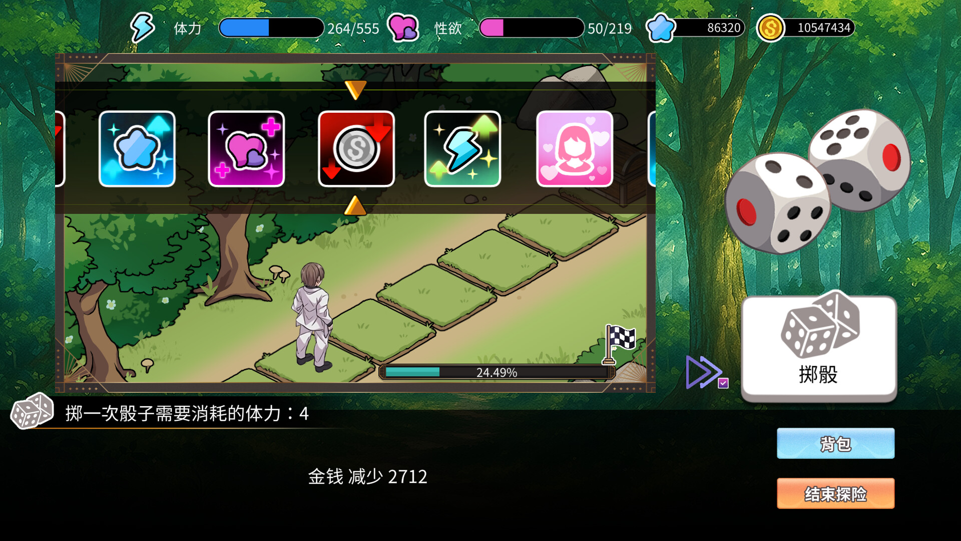 除了经营浴场赚钱以外,还有前往深山採取异世界植物进行特效药的製作高价贩售,以及其他各种赚钱管道进行资金的赚取。玩家可以在一天的四个时段当中前往各个区域与各式各样的人物进行交谈与互动,获取资讯与利益交换来提升自己的赚钱能力,获得更高的报酬利益与增加与女主角们的好感度。
