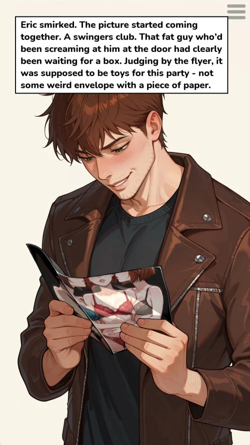 《4 Wives》是一款互动式情色漫画风格视觉小说。 这是一个普通人突然发现自己陷入了一个充满奢华和诱惑的世界的故事。 周五,一份送往高档顶层公寓的包裹、一位不满的客户和一个神秘的信封,引发了一连串事件,并将彻底改变一切……不知不觉间,四个美艳动人的女人对他念念不忘。 她们的身体因突如其来的吸引力和无法抑制的欲望而燃烧。 他原本平淡无奇的生活也随之陷入了一场充满激情、大胆冒险和幽默的旋风之中。