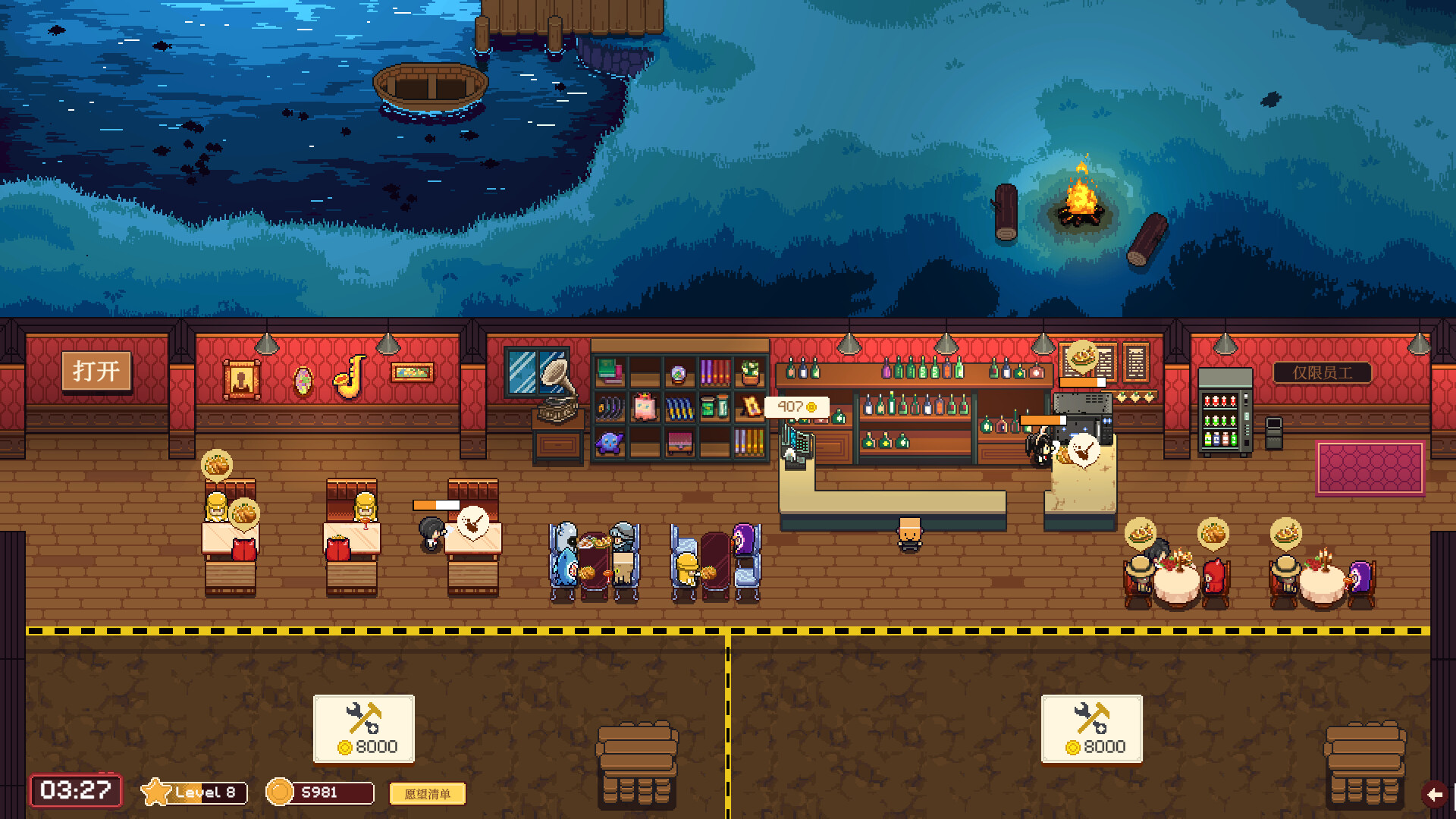 特殊顾客正在光临,他们将对您的酒吧进行评级。 好好招待他们——这个酒吧由你来经营。