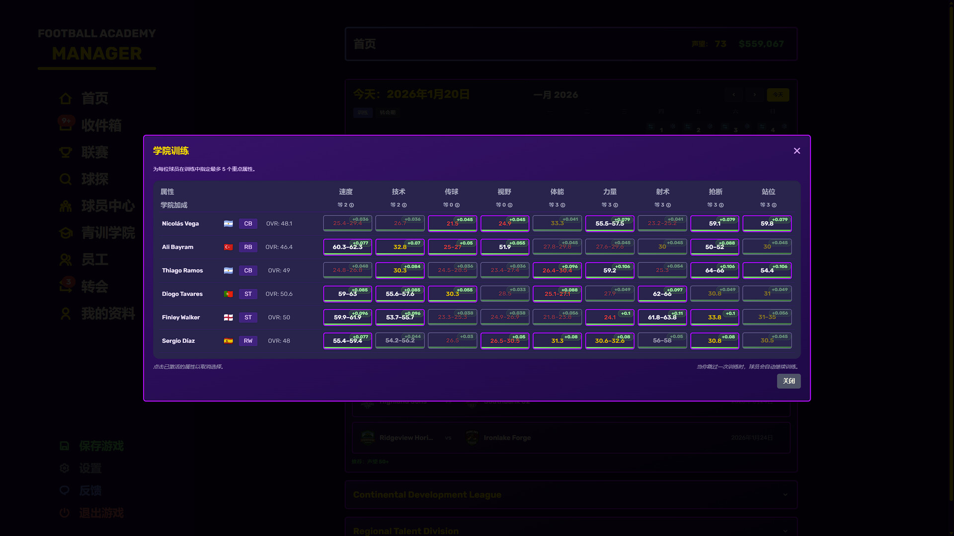 选择训练重点,长期引导成长,打造适合不同角色的专精球员。