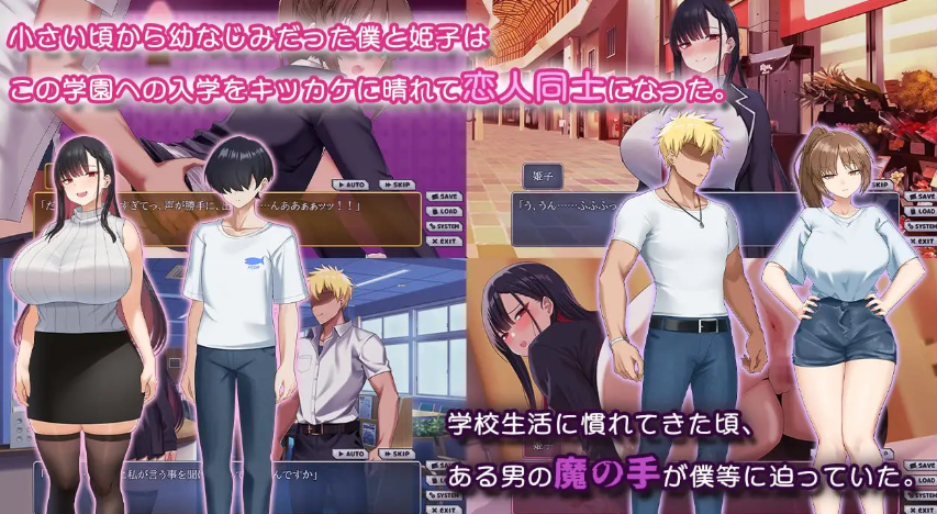 我和姬子是从小住在隔壁的青梅竹马。以考上现在的学园为契机,我们终于成为了恋人。然而,因为青梅竹马的关系持续太久,我们不知道该如何以恋人的方式相处。入学才一个月,我和她正一点一点地培养着新的关系。就在这时,我们在人烟稀少的地方目击到朋友和品行恶劣的学长在一起。担心朋友的我们,不知不觉中,一只魔手正悄悄逼近……