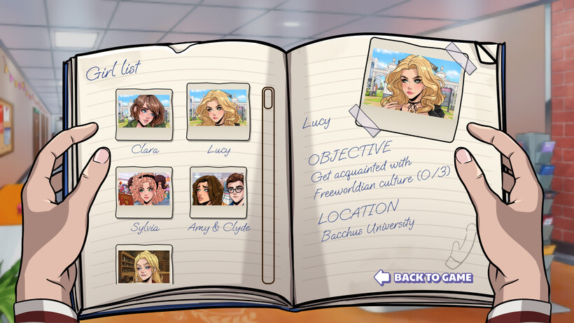 罗西塔正在撰写她的毕业论文,题目是《小死亡》。你可以在不同的地方找到她,拍下她的宝丽来照片,添加到你的收藏中。