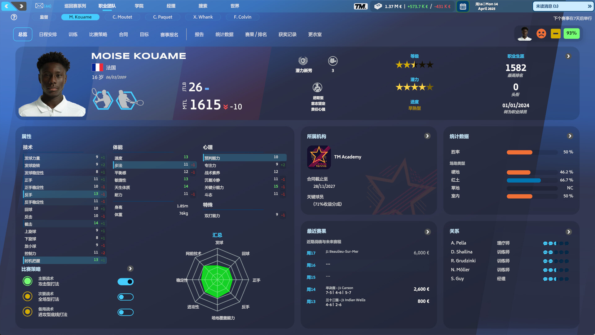 成为巡回赛最大网球学院的最佳经理——创立全新学院或接管现有豪门。全面统筹学院运营:发掘潜力新秀、管理财政收支、升级训练设施,作出关键战略决策。