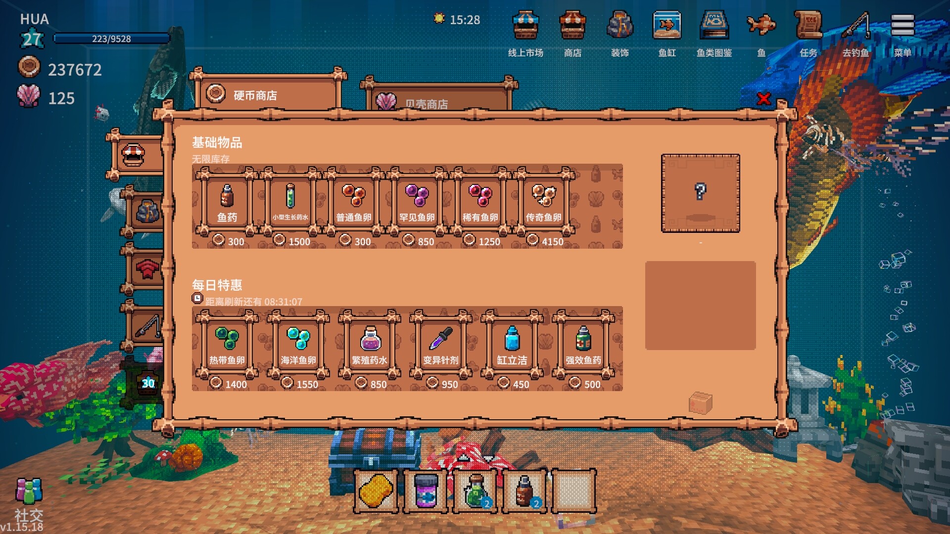 钓鱼不仅是一种获取鱼类的方式,更是一种放松心情的绝佳途径。你可以独自撑艘小船,微风拂面,鱼竿轻颤,等待那份属于你的惊喜。也可以与好友共同出海,在垂钓时进行闲聊。钓上来的鱼儿不仅可以成为你鱼缸中的新成员,还能为你带来满满的成就感!