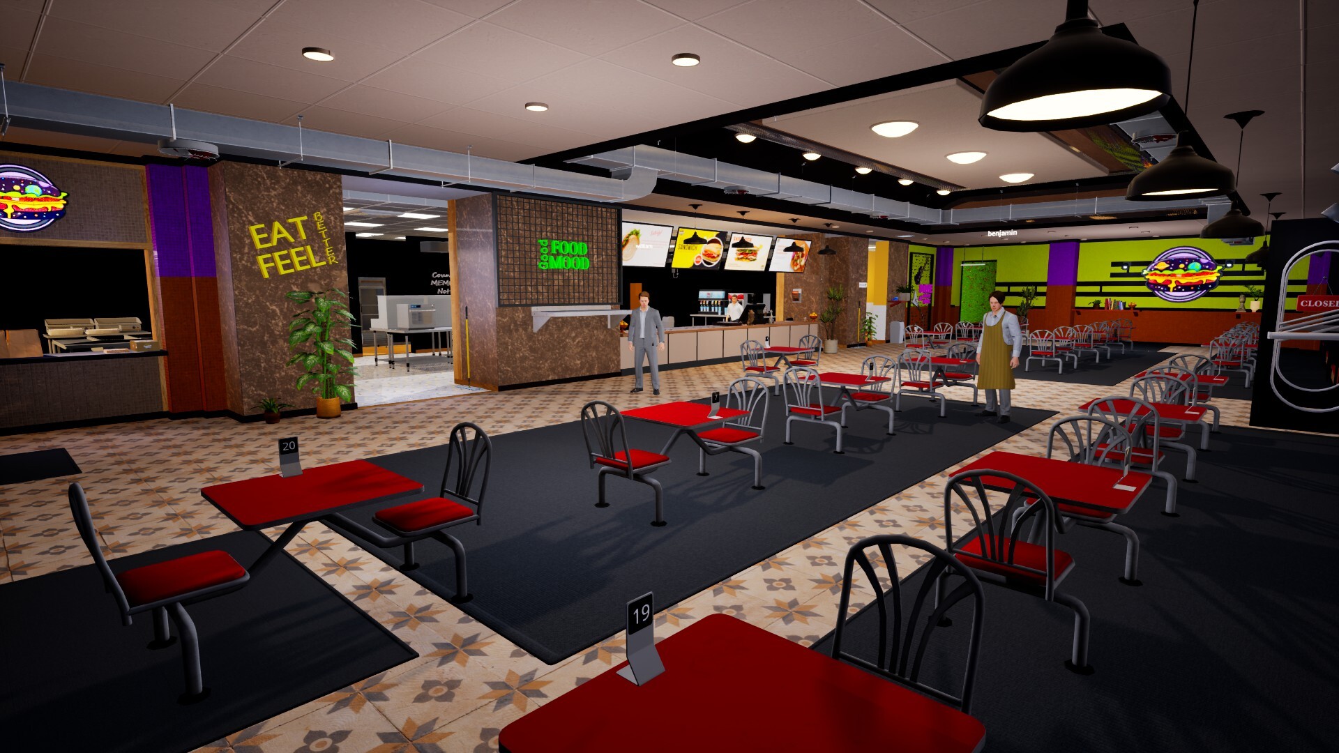 除了在店内为顾客提供餐桌服务外,如果你的餐厅足够大,你还可以购买得来速(drive-thru)服务升级。这样,你的餐厅将成为宴会停靠点,并在桌位上创造额外空间!此外,通过此项改进,你的收益还会进一步增加。