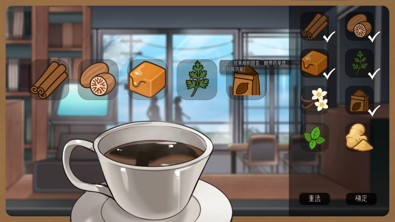 不同的配料组合能调制出各种效果的咖啡,影响冬乃的反应。